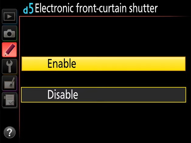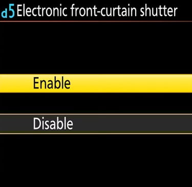 Οι σύγχρονες DSLR και οι mirrorless διαθέτουν μια λειτουργία που ονομάζεται "Ηλεκτρονικό κλείστρο μπροστινής κουρτίνας", η οποία μπορεί να εξαλείψει εντελώς τους κραδασμούς του κλείστρου. Εάν έχετε αυτήν τη δυνατότητα στην κάμερά σας, φροντίστε να την ενεργοποιήσετε από τις ρυθμίσεις της κάμερας, όπως φαίνεται παρακάτω: