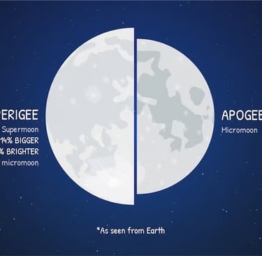 Καθώς η Σελήνη περιστρέφεται στην ελλειπτική τροχιά της γύρω από τη Γη, υπάρχουν δύο σημεία που οι αστρονόμοι έχουν επισημάνει με ονόματα. Το «Σεληνιακό Περίγειο», που είναι το σημείο της κοντινότερης απόστασης της Σελήνης στον πλανήτη μας στα 363.104 χιλιόμετρα, και το «Σεληνιακό Απόγειο», που είναι το σημείο της πιο απομακρυσμένης απόστασης της Σελήνης από τον πλανήτη μας στα 405.696 χιλιόμετρα.